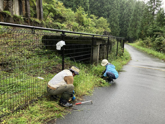 2025年10月5日(日)森のおそうじカフェを開催しました。お掃除の場所は土倉鉱山第3選鉱場跡のフェンス周辺で草刈りなどを行いました。お掃除の後はコーヒータイム。雨のせいか欠席もあり、参加者は4名程度。天候の悪い中、ご協力いただきました。作業の後のコーヒータイムではお茶とスイーツでほっこりと和んでい頂いたようです。